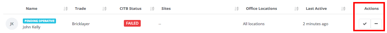 - In this example, the Operative requesting to Join your account has failed the CITB Validation.
