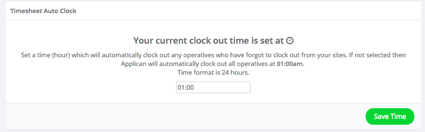 As a Contractor you can set a company wide Auto Clock Out time for Operatives who have forgotten to clock out so that each night everyone is clocked out and you know who forgot.